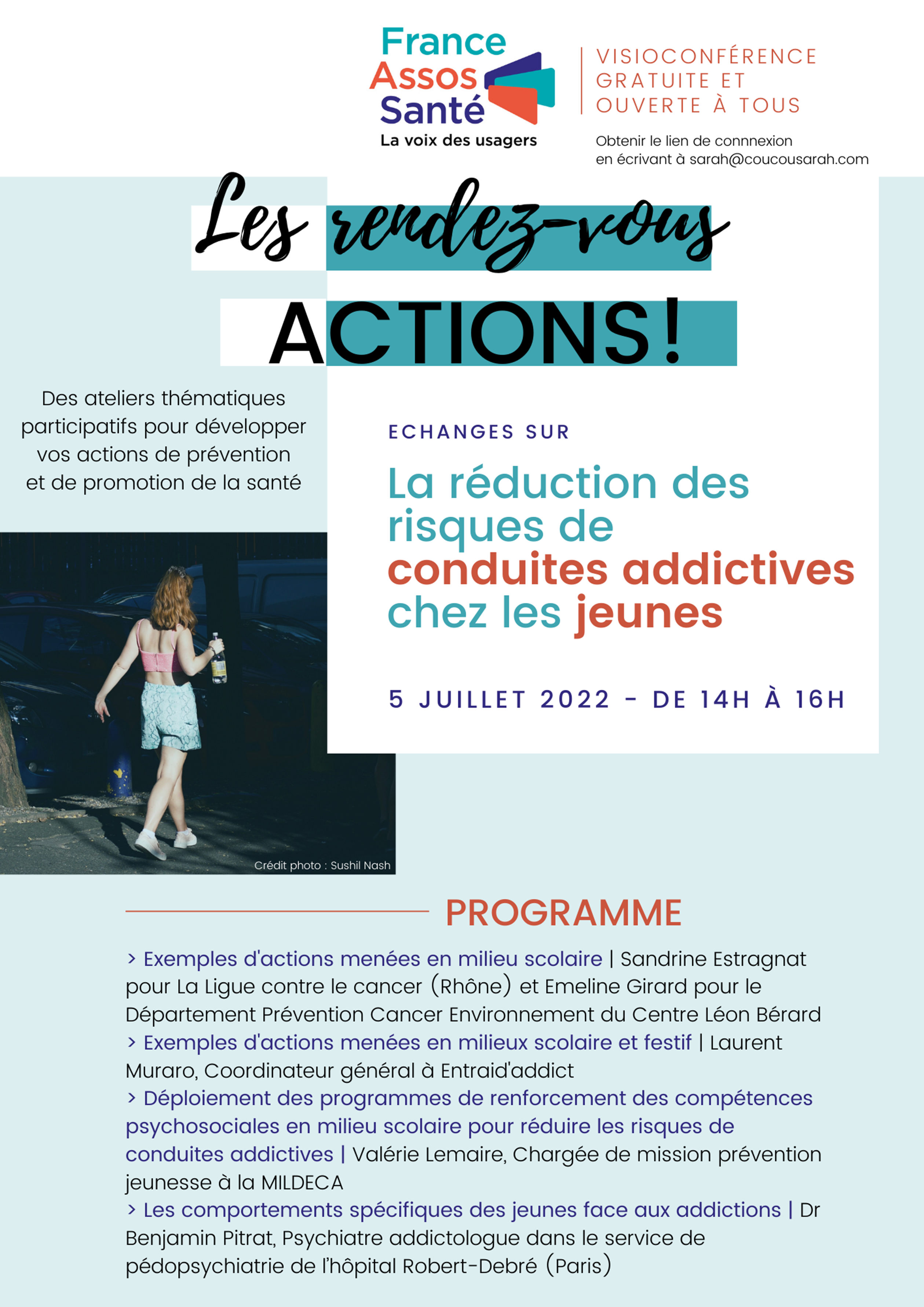 Le prochain « RDV ACTIONS » aura lieu en visioconférence le mercredi 5 juillet de 14h à 16h sur le thème de