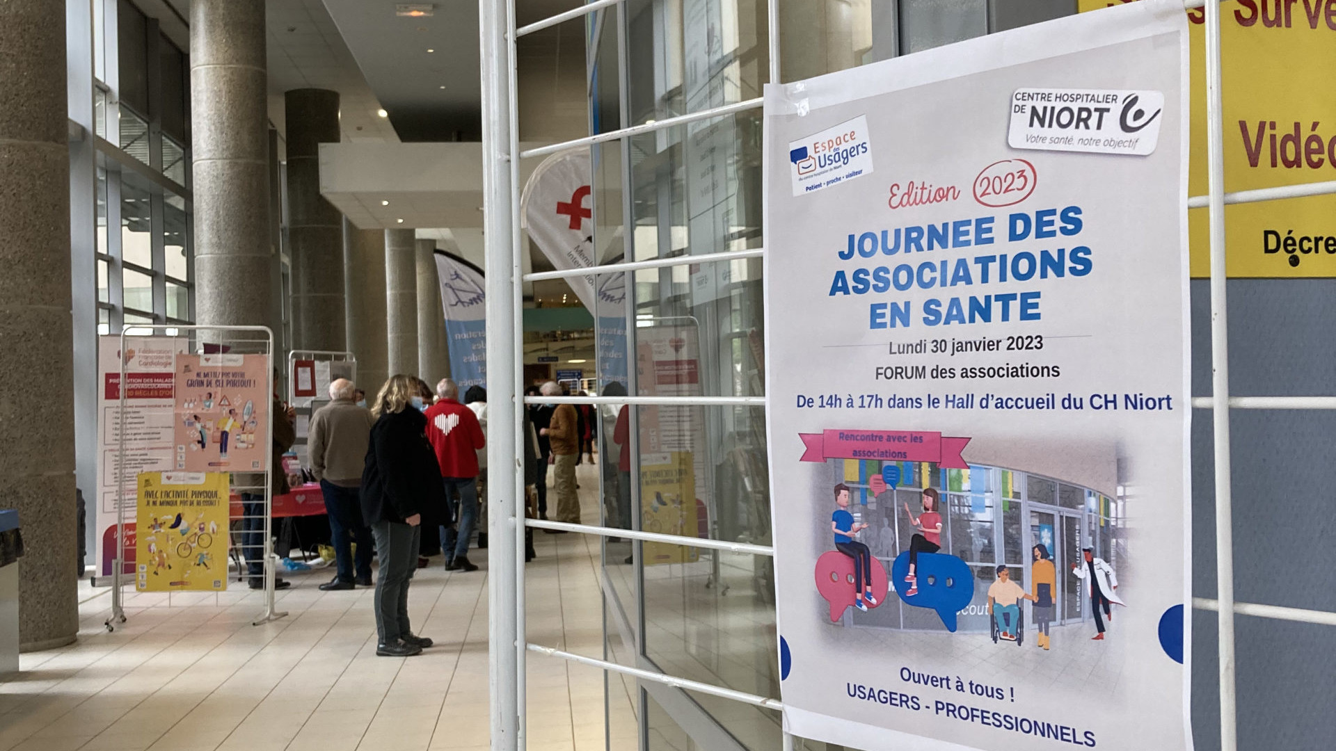 Lundi 30 janvier 2023, dans le hall du CH Niort a eu lieu le forum des associations en santé. Cette action a été organisée par l’Espace des usagers en lien avec la Direction qualité et des Usagers.