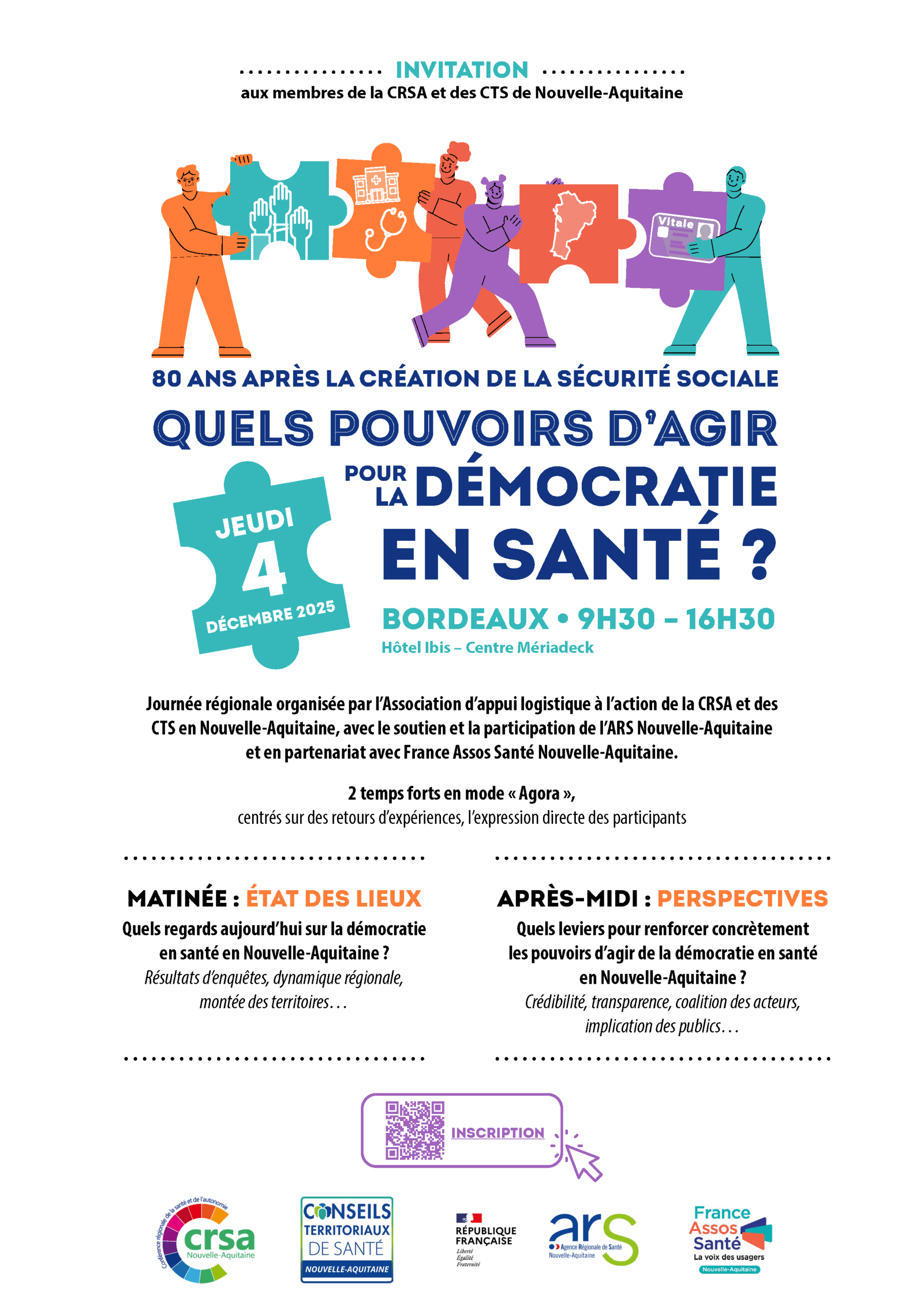 L’association CRSA/CTS et France Assos Santé Nouvelle-Aquitaine, avec le soutien de l’Agence régionale de santé, organise le 4 décembre prochain la première journée régionale Démocratie en Santé.